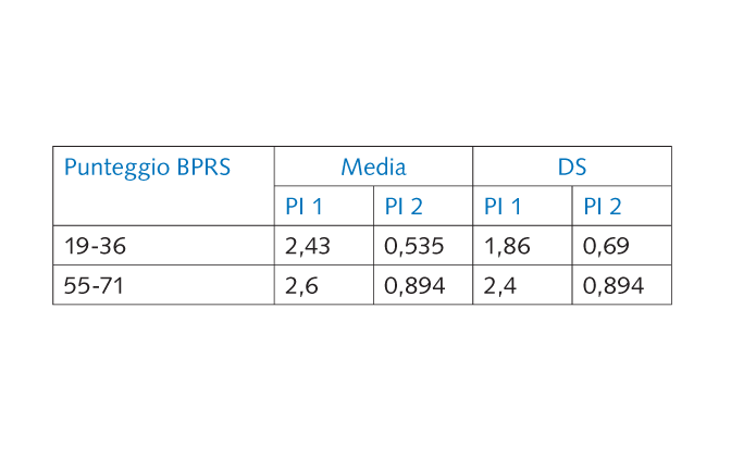 Tab. 2 Variazione del PI in relazione al grado di compromissione psicopatologica valutata tramite BPRS.