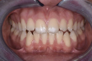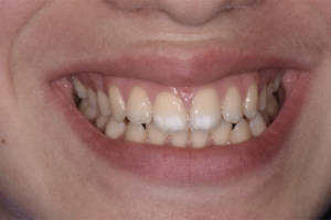 All’esame obbiettivo la paziente si presentava un ottimo stato di salute parodontale e dentale. Era presente soltanto un piccolo difetto dello smalto in sede 23 oltre a quelli già evidenziati in sede 11 e 21 presenti sin dalla nascita e di probabile origine traumatica, visto che i genitori hanno riferito che la ragazza all’età di 4 anni ha subito un trauma sugli incisivi superiori da latte.