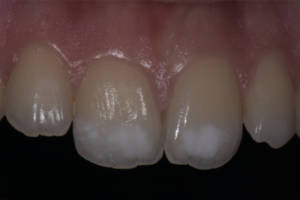 La paziente si presenta alla nostra osservazione per seduta di igiene orale professionale lamentando da sempre il suo disagio estetico per la presenza di due ampie macchie bianche in sede 11 e 21 e chiedendo se era possibile risolvere tale problematica (immagini 1-2-3).