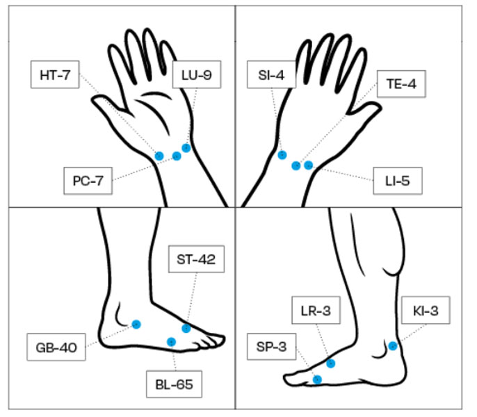 Sono stati fatti diversi studi che confermano l’efficacia della digitopressione in determinati punti (Figura 4) del corpo, per migliorare il sonno e ridurre i risvegli notturni (55-67).