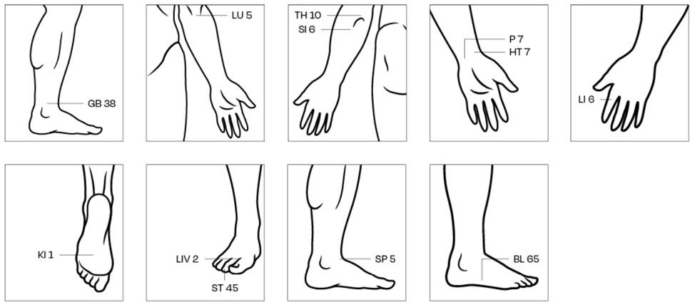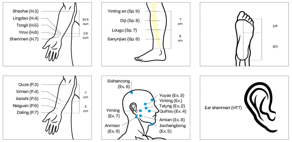 - Xia S. et al. Acupoint compatibility effect and mechanism of Shenmen (HT7) and Sanyinjiao (SP6) in improving daytime fatigue and sleepiness of insomnia. Tongfang CNKI (Pechino) Technology Co. 2022;47(7),