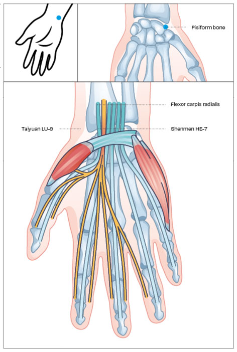 - H.E. Dent, N.G Dewhurst, S.Y Mills, M Willoughby. Continuous PC6 wristband acupressure for relief of nausea and vomiting associated with acute myocardial infarction: a partially randomised, placebo- controlled trial. Complementary Therapies in Medicine Volume 11, Issue 2, June 2003, Pages 72-77.
